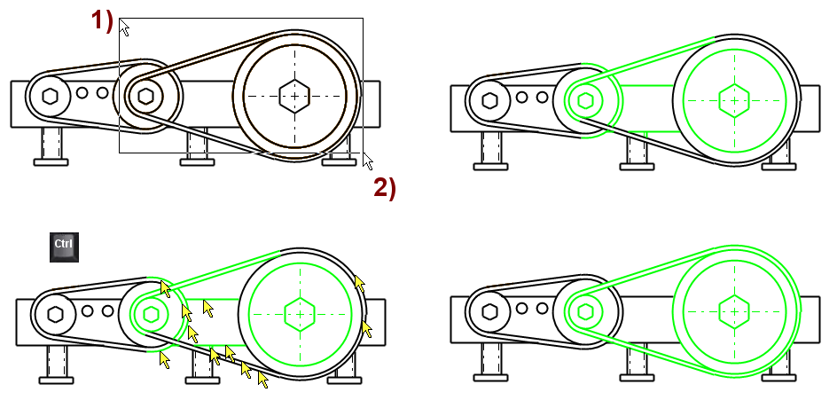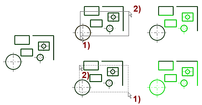 Siirrä kohdistin siten että aidattava geometria jää kokonaan sisälle ja vapauta hiiren painike. Kuva 2).