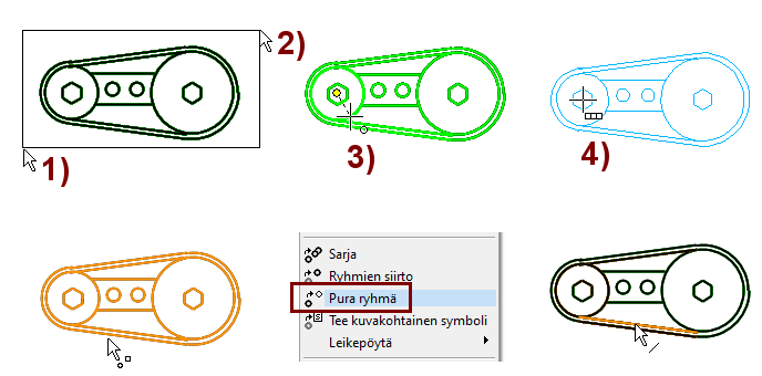 Ryhmä tulee oletuksena valittua kerralla, jos osoitat yhtä sen elementtiä.