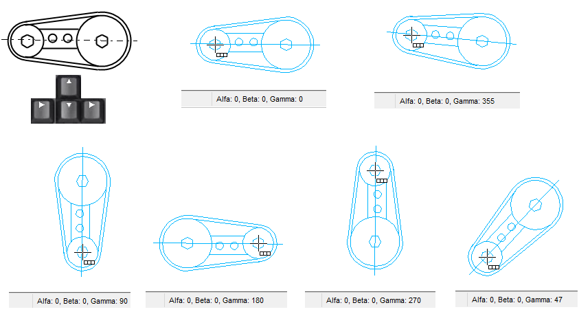Nuoli ylös = Kierto viitepisteen ympäri 5° myötäpäivään.