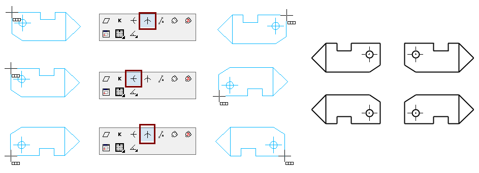 Kopioi valittu geometria siten, että sama geometria on neljässä eri asennossa.