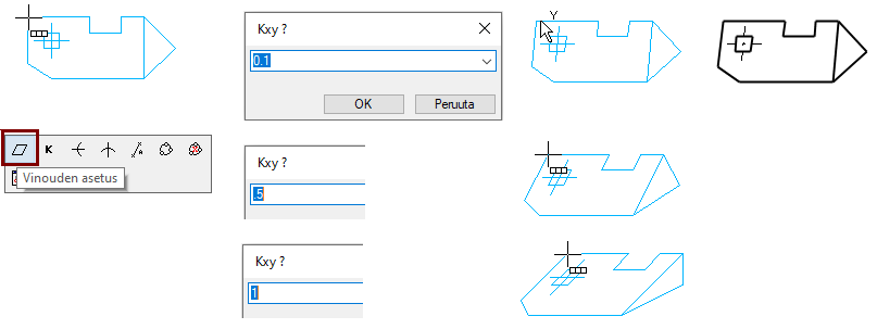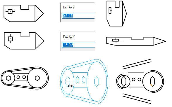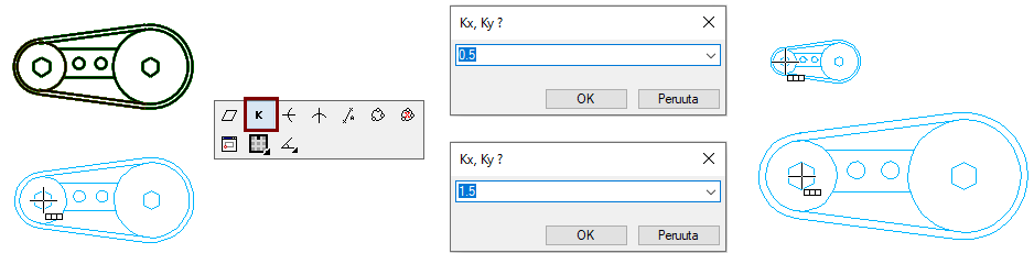 Kokokertoimella voi olla erilainen arvo vaaka- ja pystysuunnassa. Mutta huomaa, että ohjelma ei skaalaa ympyröitä ja kaaria ellipseiksi, vaikka ns. aktiivikohdistin niin näyttäisikin.