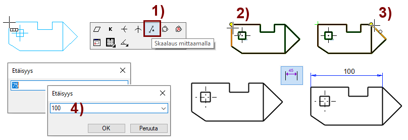 Skaalaa geometriaa siirron tai kopioinnin yhteydessä mittaamalla