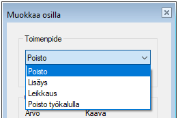 Tilannekohtainen toiminto: Muokkaa osilla.