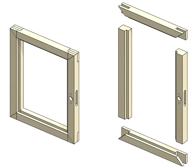 Tarkastele mallia. Huomaat että vaakakehyksissä on liitoksen muoto, mutta liitoskoneistus puuttuu pystykehyksistä.