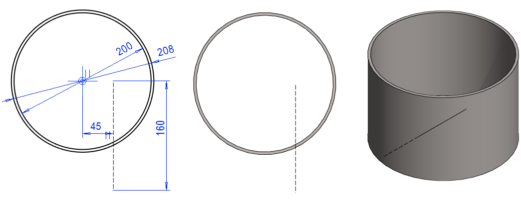 Lisää putkelle ja säiliön vaipan ohjausviivalle samankeskisyysehto.