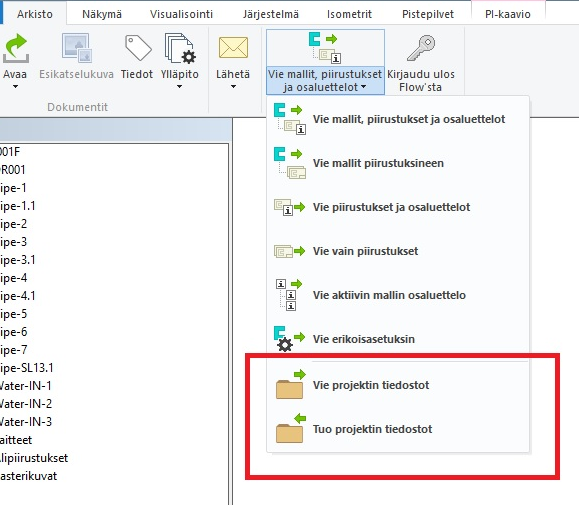 Laitossuunnittelussa käytetään paljon projektikohtaisia asetuksia, formaatteja tms. Flow-järjestelmää käytettäessä on nyt mahdollista jakaa projektikohtaiset tiedostot Flow-järjestelmään ja tuoda ne Flow'sta käytettävään G4-ohjelmaympäristöön. (PLANT-3297)