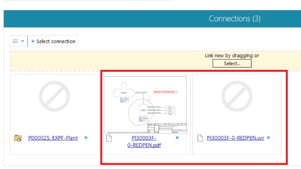 Piirustusten punakynäys-tiedostojen luonti, käsittely ja tallentaminen Flow-järjestelmää käytettäessä. Tiedostotunnisteella .vxr varustettu punakynätiedosto luodaan Flow-järjestelmään omana dokumenttinaan ja se liitetään automaattisesti alkuperäiseen Vertex-piirustukseen. (PLANT-3414)