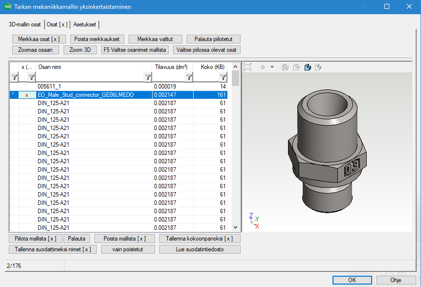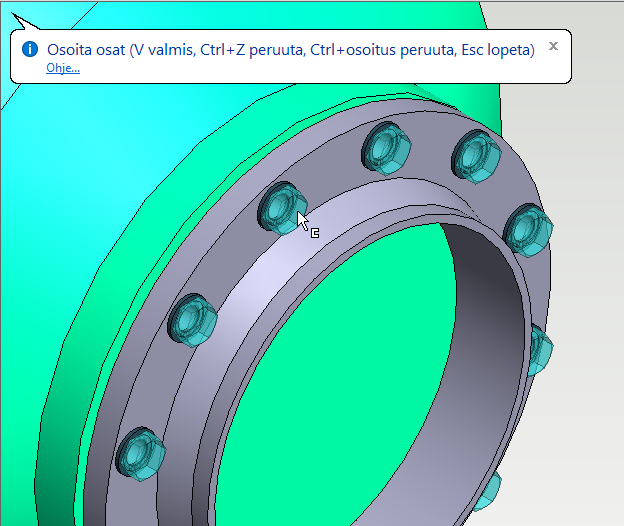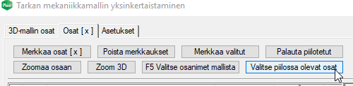 Voit osoittaa poistettavia osia mallista. Haluttaessa ohjelma valitsee automaattisesti kaikki samannimiset osat.