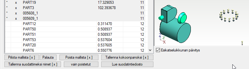 - Tallenna osat suodatintiedostoon. Tiedoston avulla voit suodattaa esimerkiksi tietyn nimiset ruuvit, mutterit ja aluslaatat pois laitteista jotka tulevat myöhemmin samalta toimittajalta.