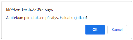 - Ohjelma kysyy vielä varmistuksen ja varaa sen jälkeen piirustuksen päivityksen ajaksi.