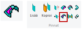 - Jos käytössäsi ei ole optiota Pintamallinnuksen lisätoiminnot, niin voit tehdä pintajoukosta kappleen toiminnolla Muodosta kappale.