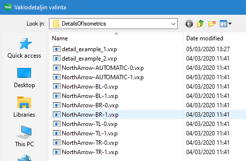 Voit nyt lisätä automaattisesti suuntanuolen isometrin kansilehdelle. Suuntanuolen sijainnin voit määrittää Isometrit-välilehden toiminnon Vakiodetaljit avulla valitsemalla valmiista vakiodetaljeista. (PLANT-3725)