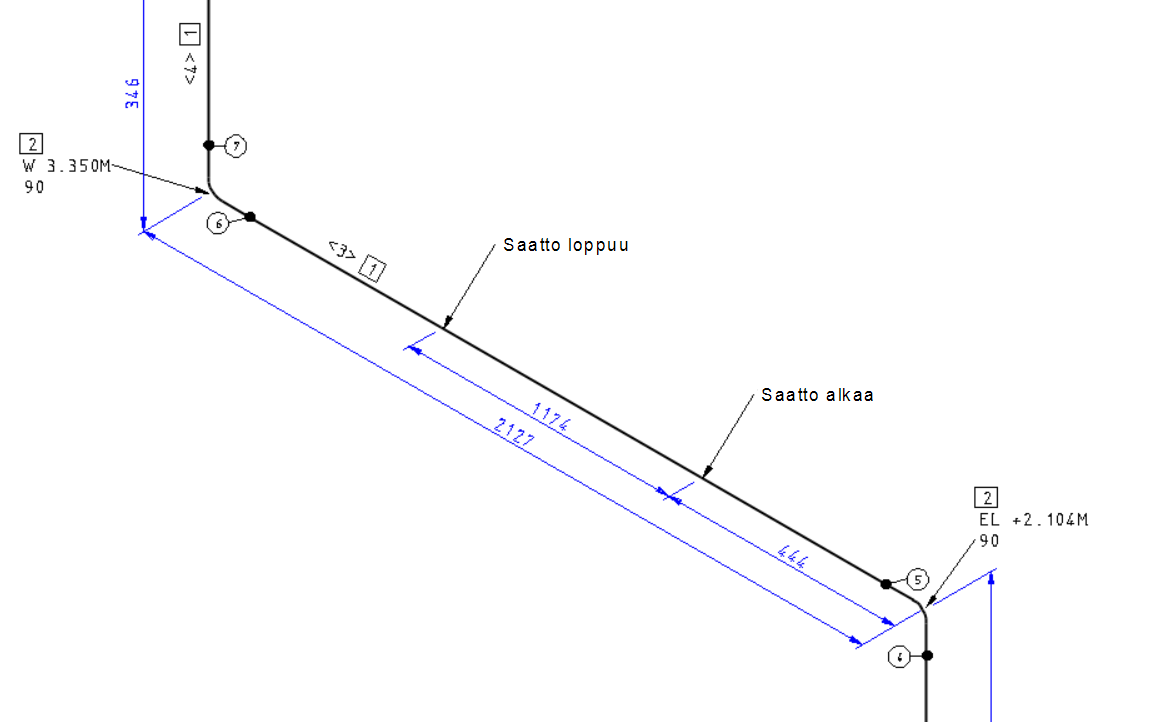 Olemme lisänneet mahdolisuuden esittää osittainen saatto isometrisessä piirustuksessa. Voit määrittää saaton aloitus- ja lopetuskohdan erityisillä isometrisymboleilla. Ohjelma lisää myös isometriin mitat saatolle. (PLANT-2357)
