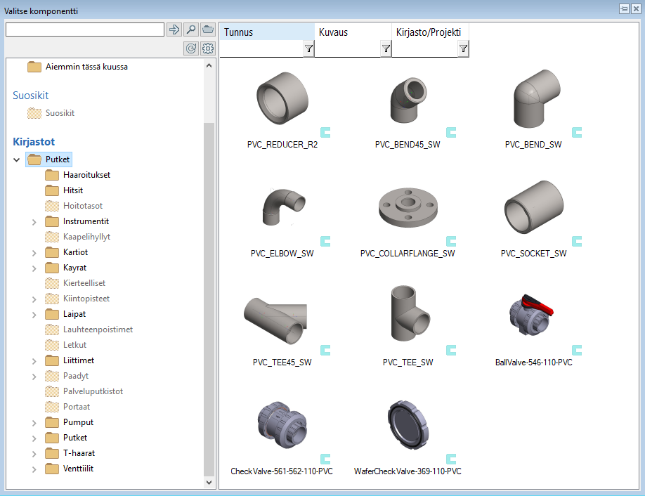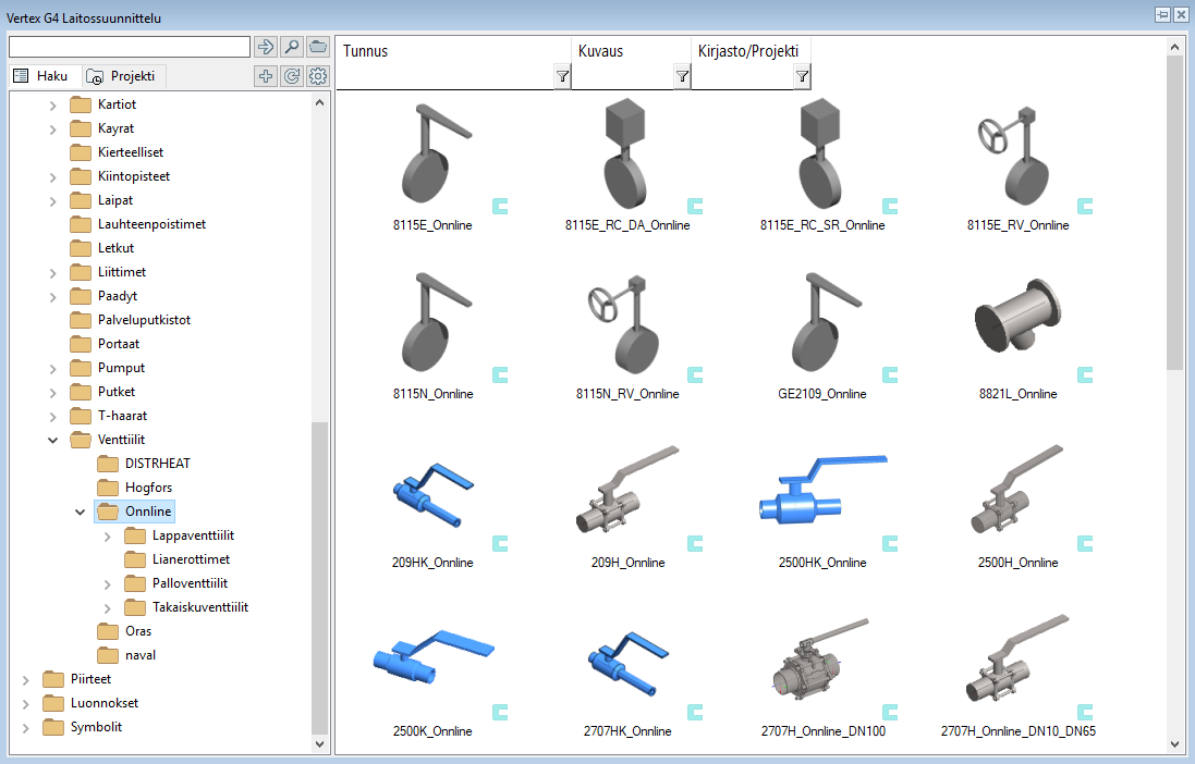 Putkikomponenttikirjastoon on lisätty Högforsin ja Onnlinen pallo-, takaisku- ja läppäventtiilejä sekä lianerottimia. (PLANT-3465)