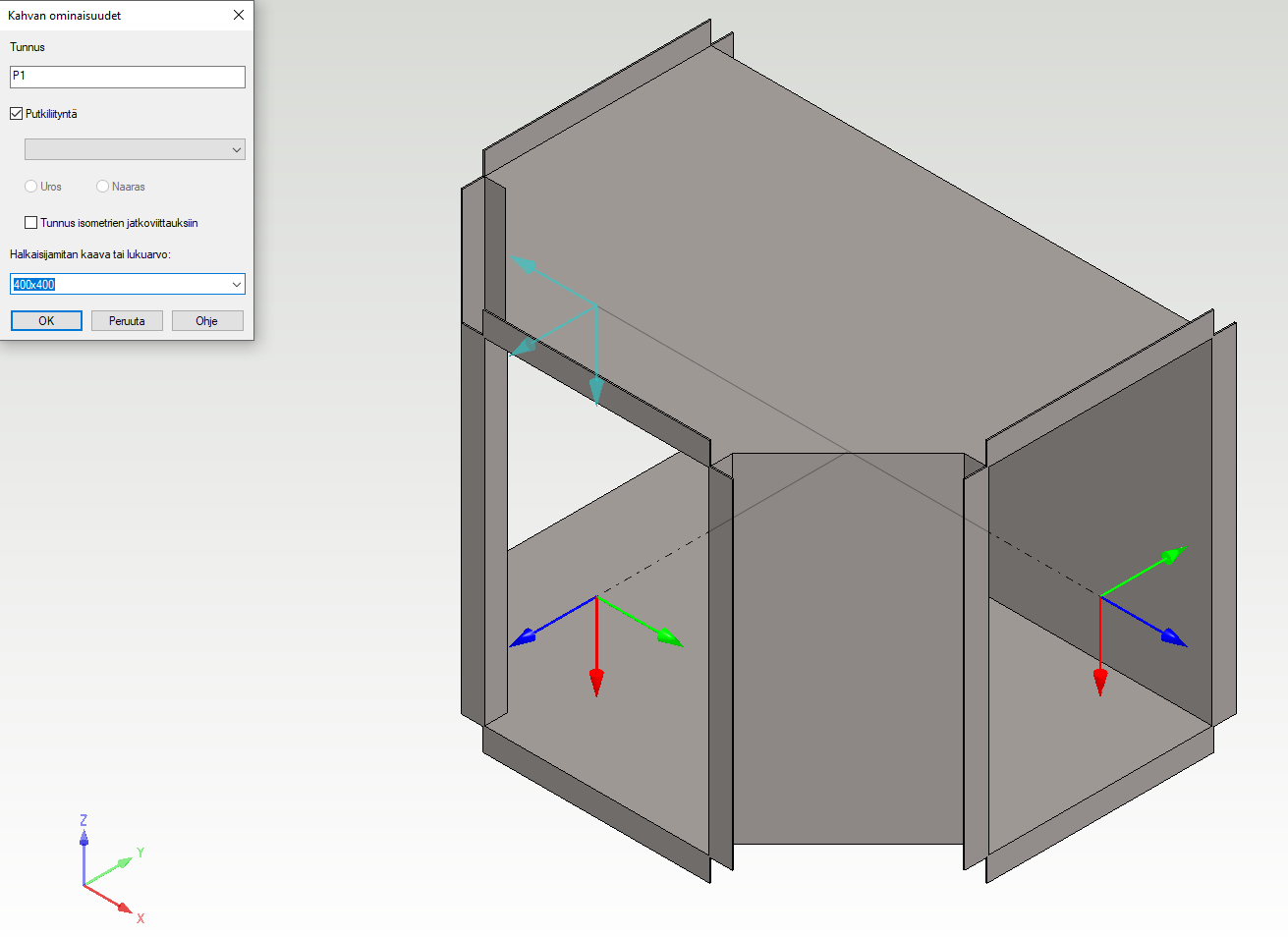 Kahvan ominaisuudet -dialogissa voidaan suorakaiteen muotoisille kanavakomponenteille syöttää kahvan koko joko suoraan mittalukuina erotinmerkkinä "x" (esim. 400x400), kun kyseessä on ei-mittaohjautuva komponentti, tai kaavoina erotinmerkkinä "|" (esim. a|b), kun kyseessä on mittaohjautuva komponentti. (PLANT-3534)