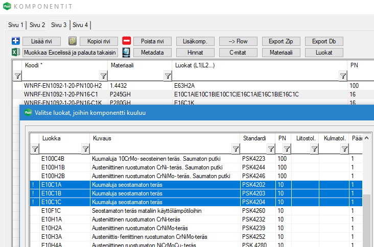 Putkiluokkiin 10L4A ja 10L4B on täydennetty uusia putkikomponentteja. (PLANT-3519)