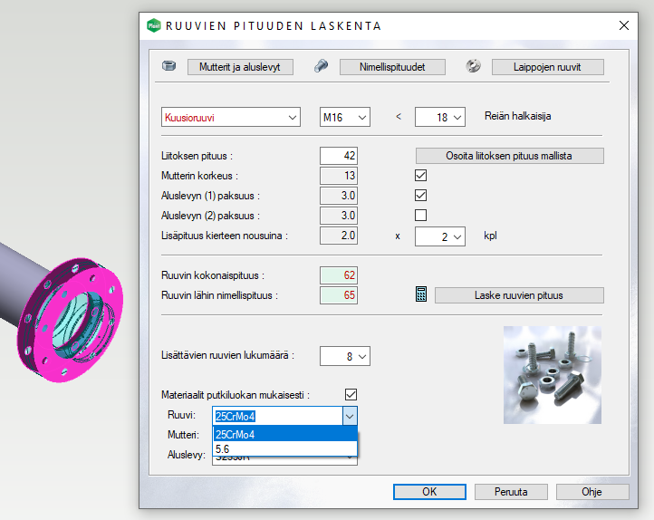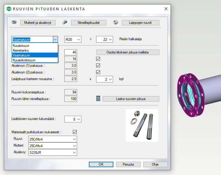 Vaarnaruuvien ja kierretankojen pituuden laskentaa parannettu