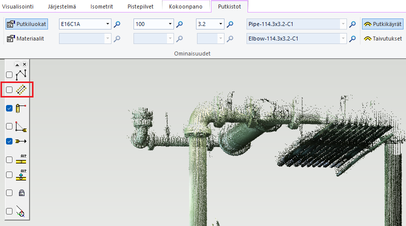 Pistepilvien kehityksen myötä käytössäsi on uusi toiminto, jonka avulla voit reitittää suoria putkiosuuksia pistepilven avulla.