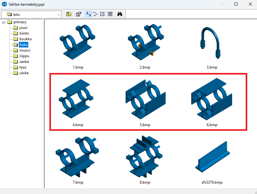 Putkiluokkien kiinnitystarvikkeiden tietokanta on sulautettu putkiluokkien tietokantaan Flow-käyttäjien näkökulmasta