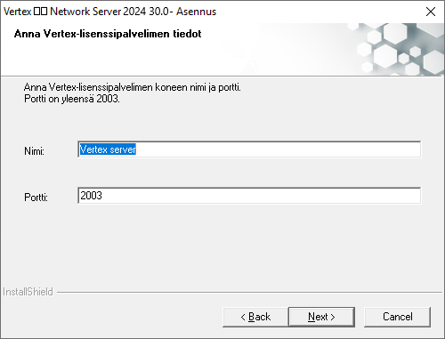 - Portin numero on päätetty, kun lisenssipalvelu on asennettu (ennen tämän ohjelman asennustapahtumaa).