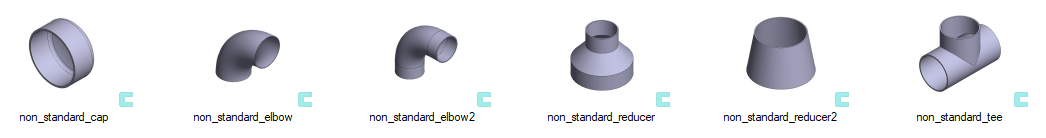 Putkikomponenttikirjastosta löytyy kuusi kappaletta putkikomponentteja, jotka ovat ns. vapaamittaisia.
