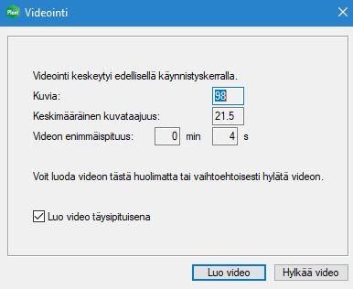Suljettaessa Vertex-ohjelma kesken videon luonnin, jää siihen mennessä tehty osuus talteen ja video voidaan luoda seuraavan Vertex-ohjelman käynnistyksen yhteydessä. (PLANT-3321)
