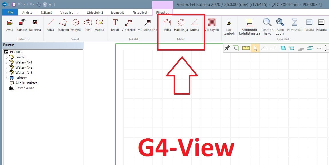Punakynäystoimintoihin on lisätty nyt mitoitustyökalut. Työkalut löytyvät G4Plant-, G4PI- ja G4 View -ohjelmistoista. (PLANT-3470)