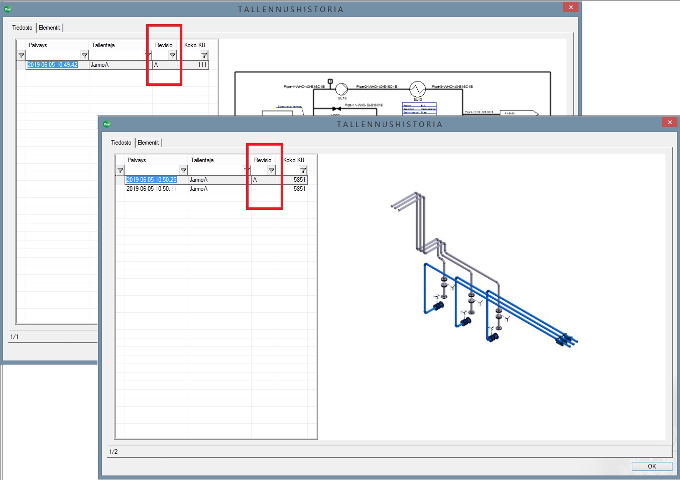 Tallennushistorian tietokantanäytössä on nähtävillä nyt tallennuksen aikainen dokumentin revisio. (PLANT-3510)