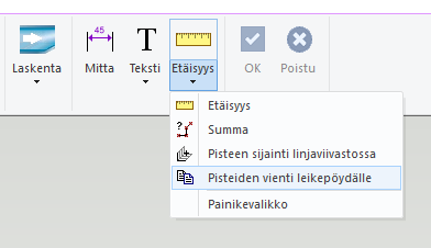 Uusi toiminto Pisteen koordinaatit korvaan vanhan toiminnon Pisteiden vienti leikepöydälle. (PLANT-3539)