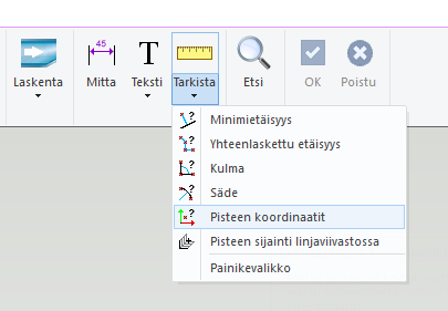 Uusi toiminto Pisteen koordinaatit