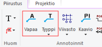 Vapaan ja tyyppikohtaisen annotoinnin asetukset projektikohtaisiksi