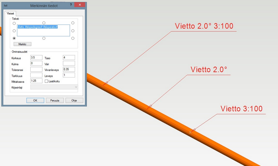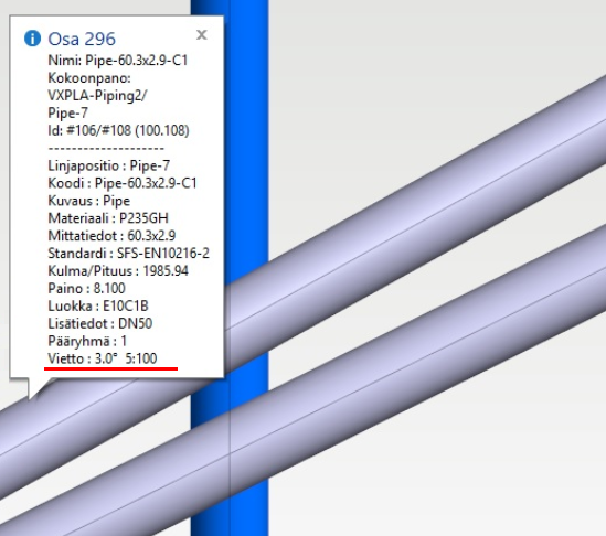 Voit lisätä malliin tiedon putkilinjan vietosta samaan tapaan kuin koordinaatteja tai korkotietoja. (PLANT-3377)
