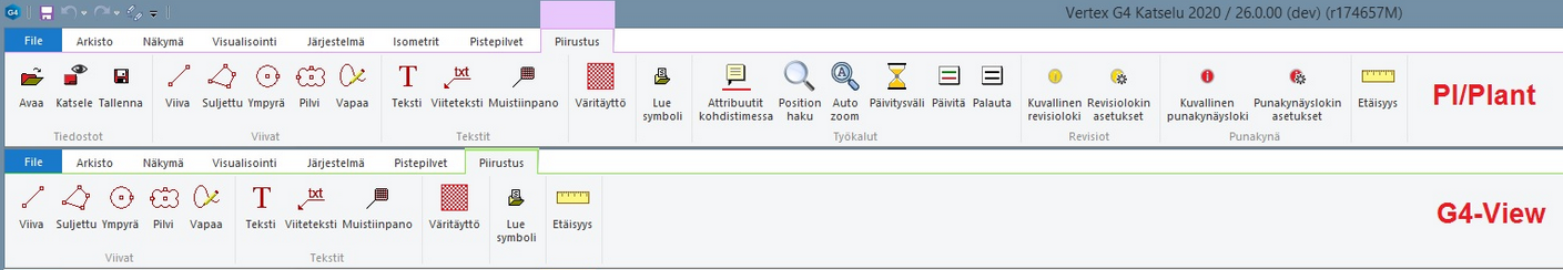 Vertex Viewer -katseluohjelmiston Plant/PI-sovelluskohtaiset painonapit aktivoituvat nyt automaattisesti ja ohjelma tunnistaa Plant/PI-sovellukset automaattisesti käytetyn ohjelmistoympäristön perusteella. (PLANT-3374)