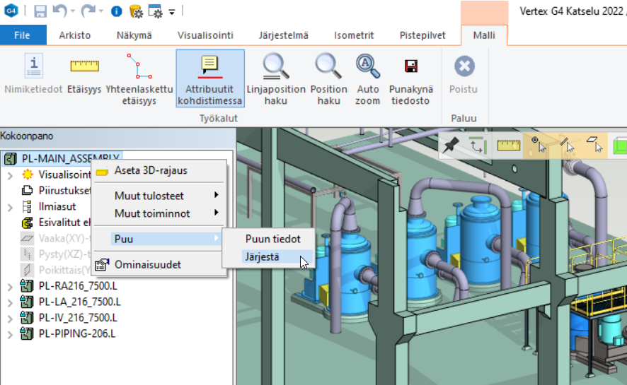 Puun tiedot ja Järjestä-toiminnot ovat nyt käytettävissä nyt myös G4 Katselu -ohjelmassa katseltavana oleville kokoonpanoille.